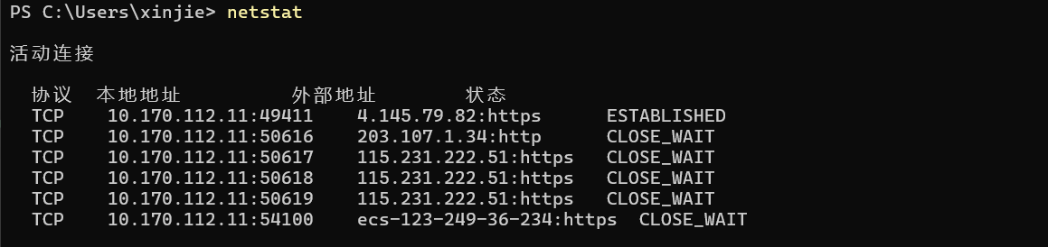 -a:显示所有连接和监听端口-t:显示 TCP 连接-u:显示 UDP 连接-n:以数字形式显示地址和端口-p:显示进程 ID/名称(Linux)-b:显示创建连接的可执行文件(Windows)-e:显示以太网统计信息-r:显示路由表