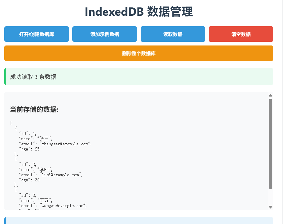 updateStatus("数据已清空。注意:刷新页面后数据库结构仍然存在。", false, true);