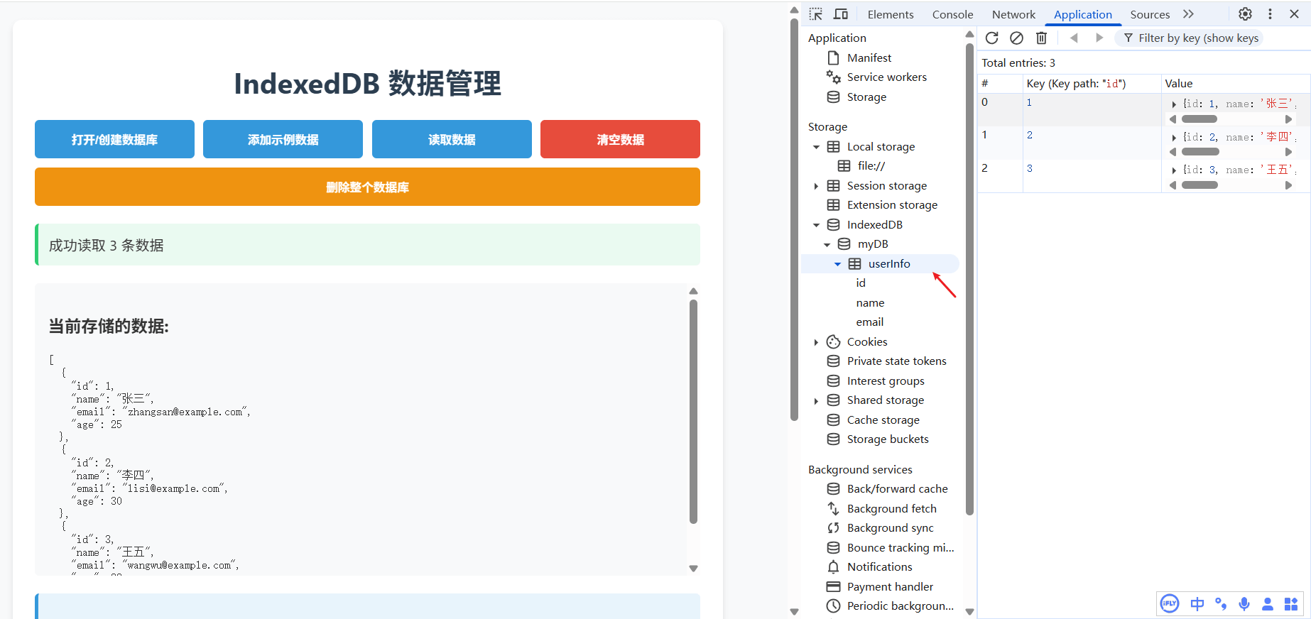 addBook({ title: "JavaScript权威指南", author: "David Flanagan", year: 2020 });b. 读取数据(通过主键)