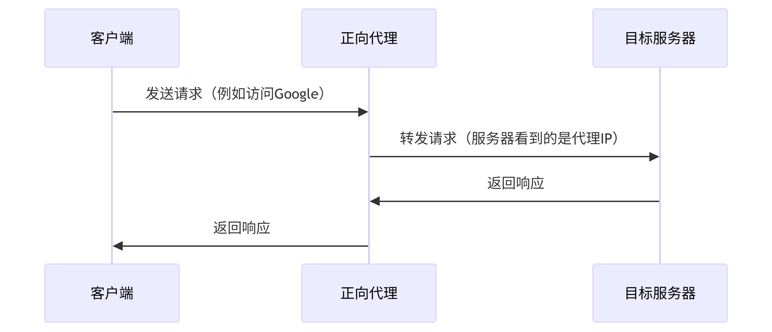 | 正向代理 | 代理客户端请求,隐藏真实客户端信息 | 企业内网访问外网、爬虫代理 |