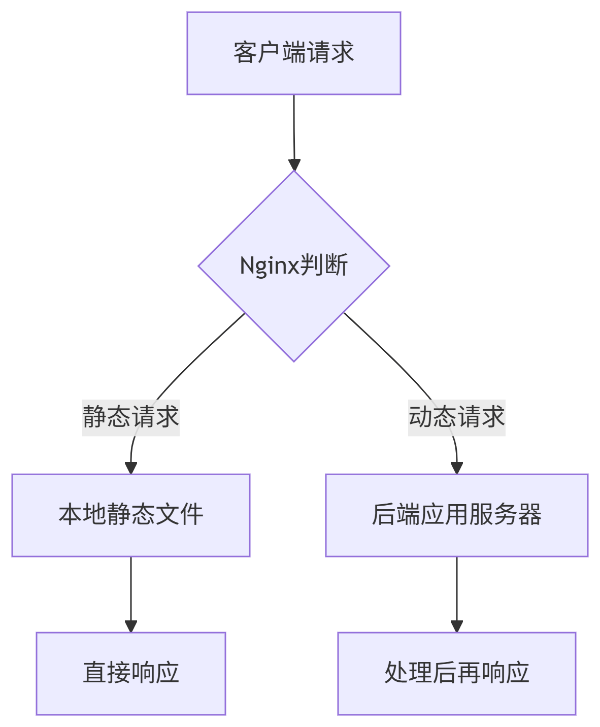 Nginx 直接返回:客户端 → Nginx → 硬盘文件 → 返回客户端(仅需 2 步跳转)
