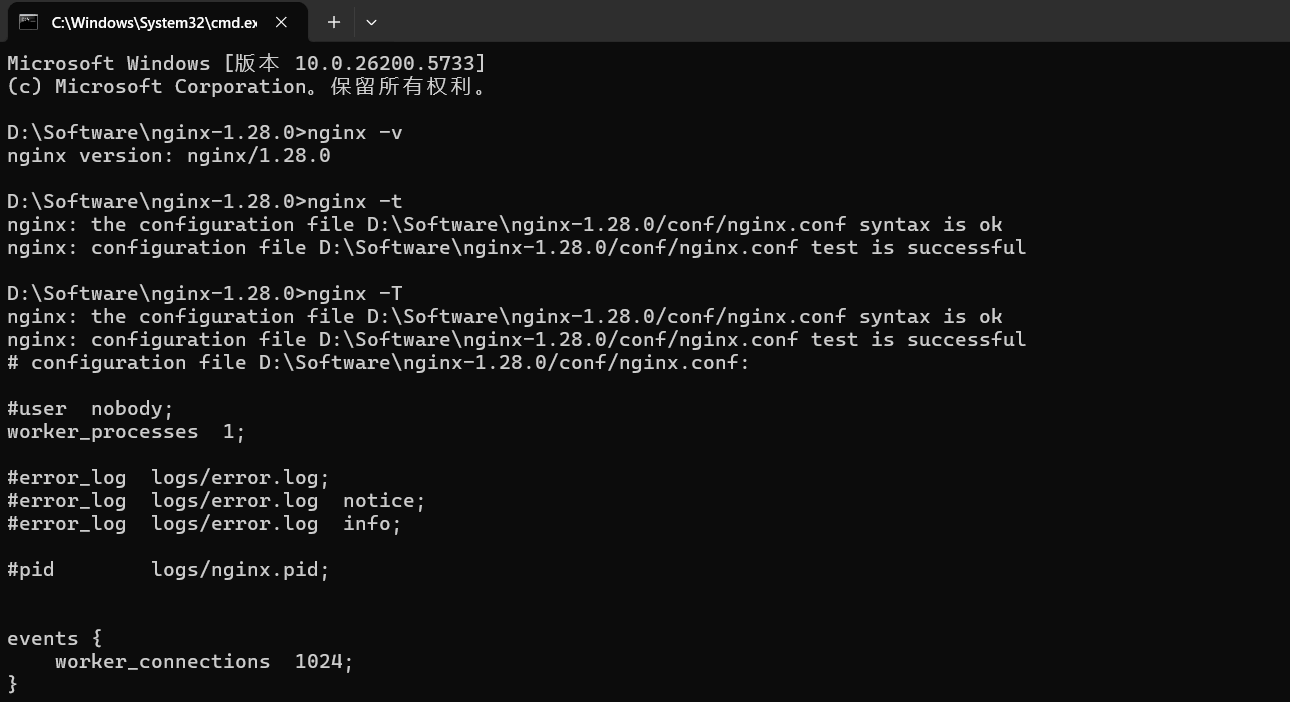 | 测试配置是否正确 | nginx -t | nginx -t |