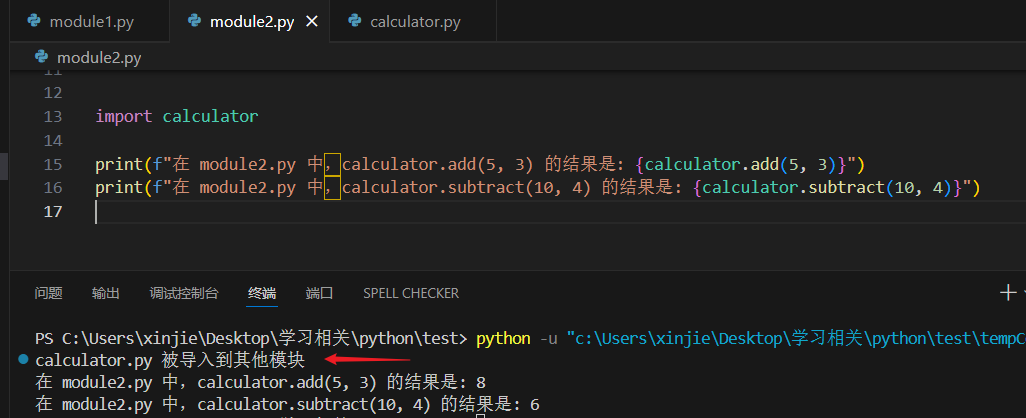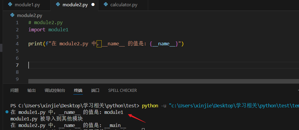 print("calculator.py 被导入到其他模块")现在将 calculator.py 导入到 module2.py 中运行输出为: