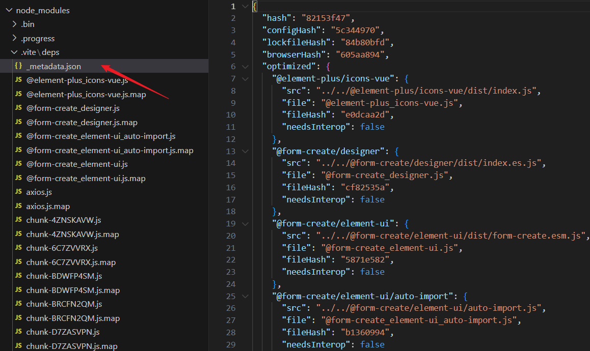 同时,.vite/deps 目录下还会存在一个 _metadata.json: